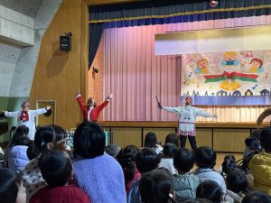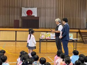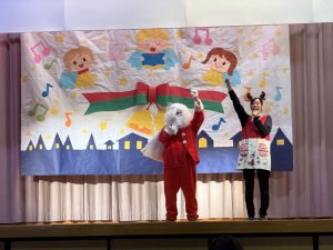 絵本「おべんとうバス」の読み聞かせを見たり、歌をうたったりした後は