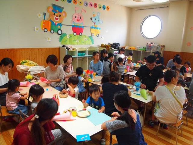 このように「園内開放」では製作や夏まつり、ミニ運動会等いろんな事を先生達とやっていきます。